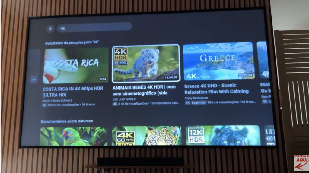 A qualidade de imagem chama atenção e os recursos disponíveis ampliam bastante as possibilidades de uso, seja para assistir filmes, séries ou conectar outros dispositivos.